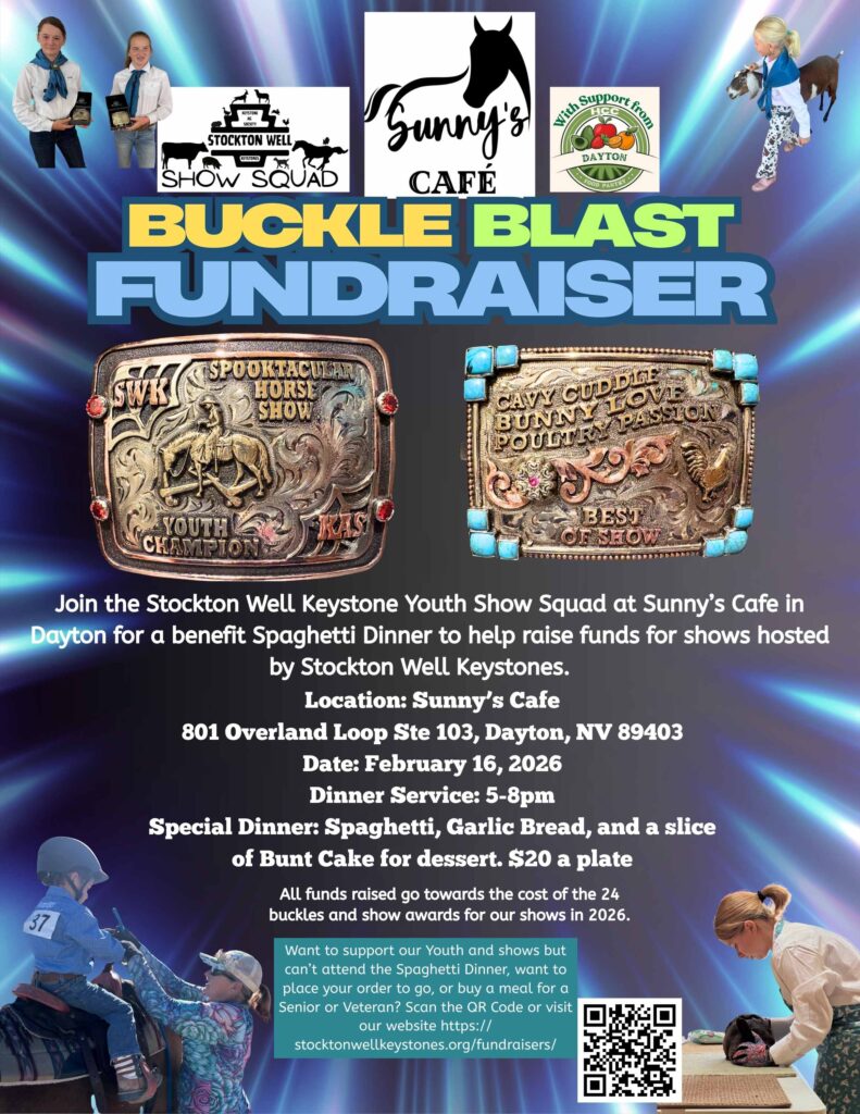 Join us at Sunny’s Cafe on Dayton, Nv on Feb 16 from 5-8pm for a Spaghetti Dinner Fundraiser for our shows. $20 meal includes Spaghetti, Garlic Bread, and Dessert. All proceeds from this event help us put on the 4 shows we host each year in our community. You can pre-purchase a meal, buy a meal for a Senior or Veteran, or make a donation using this link https://form.jotform.com/260304584275154
